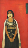 A recurring figure in his paintings is of a small girl. He describes her as the daughter of a farmer, who is very eager to pursue her education, but is prevented from doing so by circumstances. He recalls growing up in a rural town, and seeing doctors and lawyers occasionally passing through: We would admire these people, but we would never know how they became what they are. Asked why he chose to paint a young girl over a boy, he explains that he finds female faces most expressive, registering a range of emotions that vanish by adolescence. The series of paintings on this theme inspired Panchal s most recent series of the durga, or protector of the girl. This figure is shown as a powerful, mystical presence watching over the girl as might a spiritual guide.