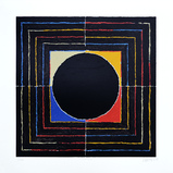 Raza worked mainly with a few primary colours, assembled and reassembled to simulate the passion and colours of his homeland. At the same time, he had realised the spiritual and metaphysical aspects of nature and began incorporating these principles in his works. In the late 1970s, the artist's focus turned to pure geometrical forms; his images were improvisations on an essential theme: that of the mapping out of a metaphorical space in the mind. Around this time, the bindu—a motif that would become synonymous with Raza’s art— began emerging in his work. It was the result of his concern with “pure plastic order” combined with his preoccupation with nature. “Both have converged into a single point and became inseparable; the point, the bindu, symbolises the seed, bearing the potential of all life, in a sense. It is also a visible form containing all the essential requisites of line, tone, colour, texture and space. The black space is charged with latent forces aspiring for fulfilment.” (Artist quoted in Sen, p. 134)