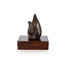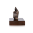 The sculpture is mounted on a detachable wooden base measuring 1.5 x 5 x 5 in (4 x 13 x 13 cm)