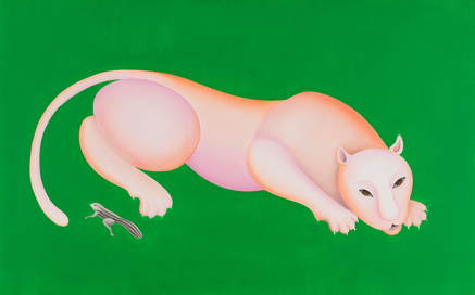 “Stylisation and figuration cannot be forced or imitated–it flows naturally from an individual premise. At all times, it is your own voice, your signature.” - MANJIT BAWAM anjit Bawa’s oeuvre is unparalleled in the history of Indian art, standing apart from contemporaneous trends yet drawing from the deep well of established traditions. His determined pursuit of a unique individual style led to a singular calling card of fluid figures against a brilliant flat backdrop. Bawa’s excellent draughtsmanship anchors his works; the artist considers line to be his most important element. He explained the centrality of drawing to his practice in saying, “...the importance of drawings can never be over?emphasised. In my mind drawing is the most important part of the overall structure the artist is trying to create whether he is a figurative or one who delves into the exploration of abstract art.” (Manjit Bawa, “Trust Life, Simple Trust, Do Not the Petals Flutter Down Just Like That?”, Ina Puri ed., Readings: Manjit Bawa, New Delhi: Lalit Kala Akademi, 2010, p. 95) This lot perfectly exemplifies Manjit Bawa’s exceptional draughtsmanship. A rosy?hued big cat frolics with a squirrel against a flat ground of bright green. The two figures mirror each other despite their considerable difference in size, creating a harmonious loop with each facing the other’s tail. Bawa masterfully creates a palpable sense of movement on the sparse canvas with his rippling lines. He immersed himself in drawing from a young age and honed this skill under the tutelage of renowned artist Abani Sen starting at 16. From Sen he learned the importance of anatomy and the crucial role space plays in composition. These became the guiding principles of his practice, even when the organic forms fragmented and hovered in the pictorial space of his works from the 1960s. In the late 1970s, the forms once again coalesced into whole figures; these highly stylised figures were expressed with an astonishing fluidity of line made possible by Bawa’s obsessive lifelong sketching. He considered draughtsmanship central to the evolution of his art. Speaking of his practice at the time he matured into his signature style he said, “I progressed further as I developed more control now with my figuration. I sensed a feeling of lightness of being; my art became sahej.” (Bawa quoted in Ina Puri, In Black & White: The Authorized Biography of Manjit Bawa, New Delhi: Penguin Books India, 2006, p. 167) On seeing Bawa’s works in this style for the first time, the artist Jagdish Swaminathan marked it as a massive turning point in his career. “With these works, Manjit emerges as a painter of true significance. The breakthrough has come about through a double metamorphosis. His earlier figurative work, gave place to abstraction where pneumatic forms–both erotic and horrific–floated in a void of mauves, pinks and greens. This phase has now been negated, and the synthesis has resulted in breathtaking poetry. Here animals, plants and humans all cohabit, taking their birth from the same ethereal tissue, like balloons blown into various shapes, engaged in a purposive play which defies understanding.” (Swaminathan quoted in S Kalidas, “Let’s Paint The Sky Red: Remembering Manjit Bawa in Art and in Life”, Manjit Bawa: Let’s Paint the Sky Red, New Delhi: Vadehra Art Gallery, 2011, p. 17) Bawa was instinctively drawn to bright colours like in the present painting. He turned his back on muted Western colour palettes to fill his canvas with hot reds, blazing yellows and greens reminiscent of Pahari miniatures of the Basohli and Guler schools. This love of colour can be attributed to Bawa’s attachment to the Indian landscape. His appreciation of the high drama of the northern terrain was further deepened by his travels as a young man which impressed its moving vivacity upon him. Said Bawa of his expanding horizons, “As a college student I had visited Sohna once and seen the most incredible sight. The sun was setting and in that fiery sunset, the rocks glowed red and the Gulmohar blossoms appeared a deeper red. I was spell bound. In retrospect, that was when I first began using red in my paintings. Similarly, the vistas of our mustard fields, the bright cadmium yellow flowers of sarson (mustard), the paddy green, the deep blue waters of the Beas.” (Manjit Bawa to Ina Puri, “The Indian Crow in Post Modern Skies”, Manjit Bawa, Mumbai: Sakshi Gallery and London: Gallery Maya, 2005) Bawa’s works are a celebration of the act of creation, one which deftly sublimates the particulars of the artist’s milieu, influences, interests and temperament onto gem?like canvases like the present lot. Indian filmmaker and poet Buddhadeb Dasgupta appraised the prismatic sophistication of Bawa’s art with, “Manjit’s art, complex and multilayered, beguiles the casual onlooker with its deceptive oversimplification. Nothing could be further from the truth. Manjit has spent a lifetime honing his skills as a draughtsman, artist and colourist, but–like a Zen master–he is also a minimalist and a purist.” (Buddhadeb Dasgupta as told to Ina Puri, “Wide Angle”, Ina Puri ed., Readings: Manjit Bawa, New Delhi: Lalit Kala Akademi, 2010, p. 153)