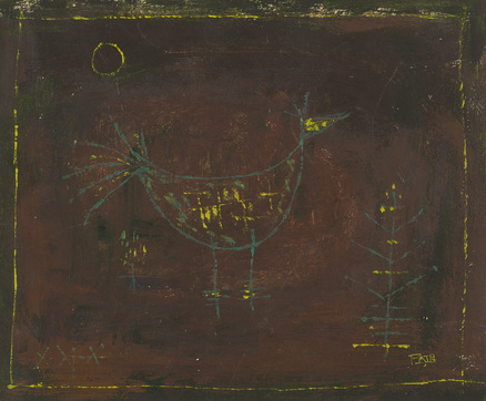 Signed 'PATEL' (lower right); signed and inscribed 'H. B. Patel/ A BIRd' (on the reverse)