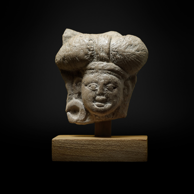 This sculpture is attached to a wooden base measuring 0.5 x 1.75 x 1 in (1 x 4.5 x 2.5 cm)
