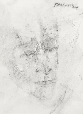 Padamsee’s interest in structure and form takes shape from landscapes, and is borne from an interest in Sanskrit texts such as the Abhijanashakuntalam . His Mirror Images reflect a concern with the duality of existence. His portraits and heads are treated with the same interest in constructing form rather than in the specifics of portraiture. The only occasion when he created identifiable portraits was in 1997, with his “Gandhi” series of works on paper in watercolour and charcoal.