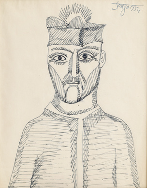 Francis Newton Souza's unrestrained and graphic style created thought-provoking and powerful images. His repertoire of subjects covered still life, landscape, nudes and icons of Christianity, rendered boldly in a frenzied distortion of form. Souza's paintings expressed defiance and impatience with convention and with the banality of everyday life. Souza's works have reflected the influence of various schools of art: the folk art of his native Goa, the full-blooded paintings of the Renaissance, the religious fervour of the Catholic Church, the landscapes of 18th and 19th century Europe, and the path-breaking paintings of the moderns. A recurrent theme in his works was the conflict in a man-woman relationship, with an emphasis on sexual tension and friction. In his drawings, he used line with economy, while still managing to capture fine detail in his forms. He also used a profusion of crosshatched strokes that made up the overall structure of his subject.