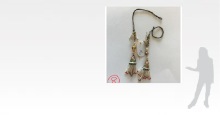 The earrings consist of a gold hemisphere with polychrome enamel depicting peacocks, flowers and leaves; suspending a fringe of pearls and an enamelled gold sphere, to a surmount of a similarly enamelled gold sphere and ruby cabochons. Accompanied by cords for ear support.