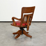 Oak with leather seat, cane backing and metal hardware