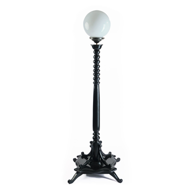 Teak and brass with a white opal shade
